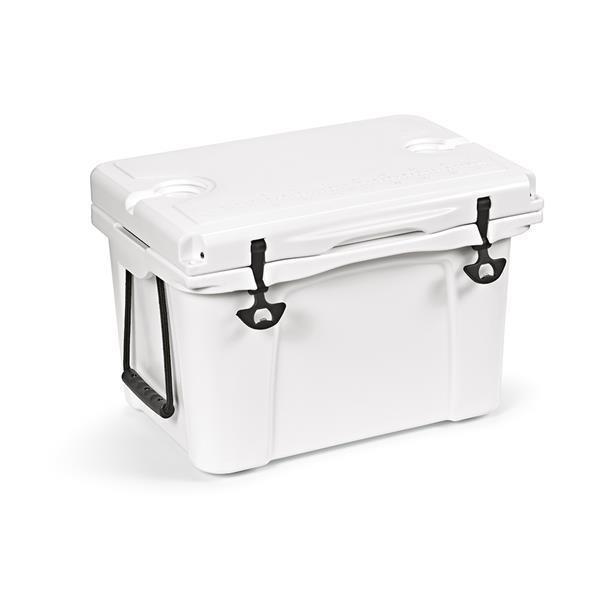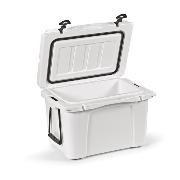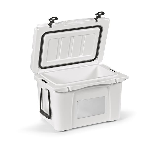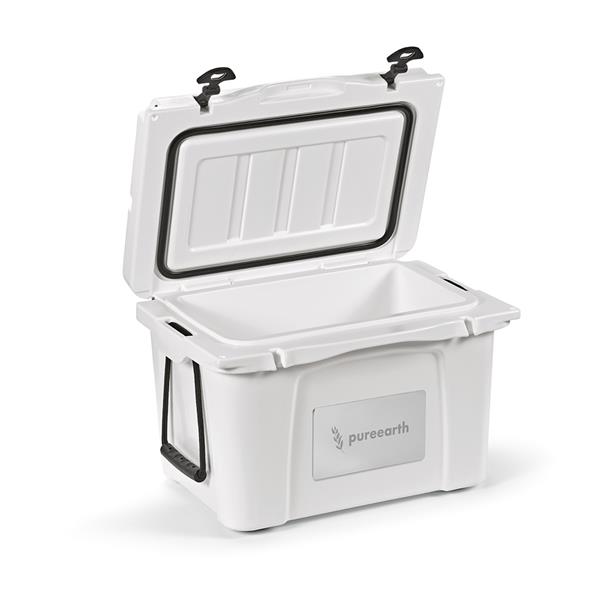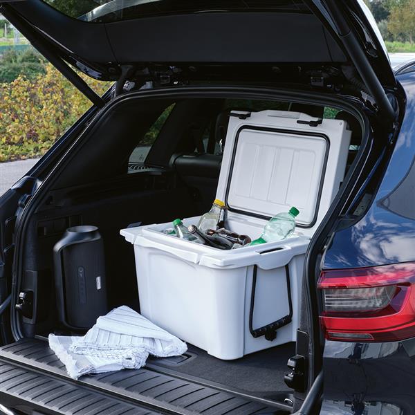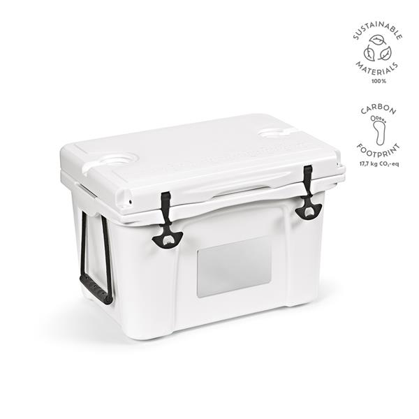 Nasza przyjazna dla środowiska lodówka pozwoli Ci lepiej spędzić czas na świeżym powietrzu. Wykonana z tworzyw sztucznych pochodzących z recyklingu, z podwójnymi ściankami, pojemnością 35 l i dużą przednią płytą z możliwością dostosowania (20 x 10 cm). Izolowany korpus zapewnia chłodzenie napojów nawet przez 4 dni.
