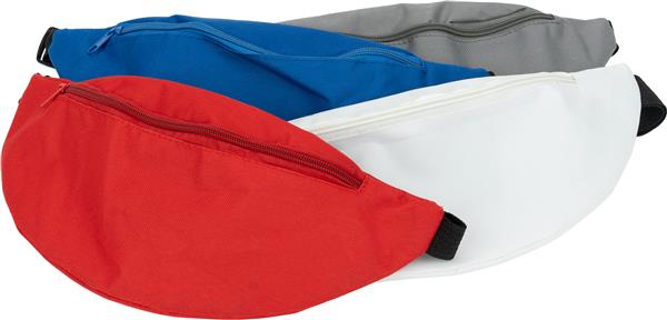 Saszetka na pas wykonana z poliestru 600D. Wyposażona w kieszonkę na zamek błyskawiczny, przegródkę oraz regulowany pasek na ramię. Dostępna w kilku kolorach.