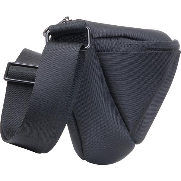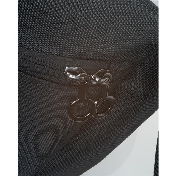 Nylonowa saszetka z detalami w kolorze gun metal, pas można regulować do długości 115 cm.
