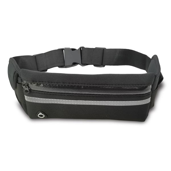 Outdoorowa saszetka sportowa do noszenia na pasie. Posiada komorę główną, małą kieszonkę, specjalny uchwyt na butelkę oraz wejście na słuchawki i odblaskowy element. Zamykana na zamek. Regulacja obwodu pasa. Zapewnia komfortowe i bezpieczne noszenie portfela, telefonu czy innych drobiazgów bez obciążania kieszeni.