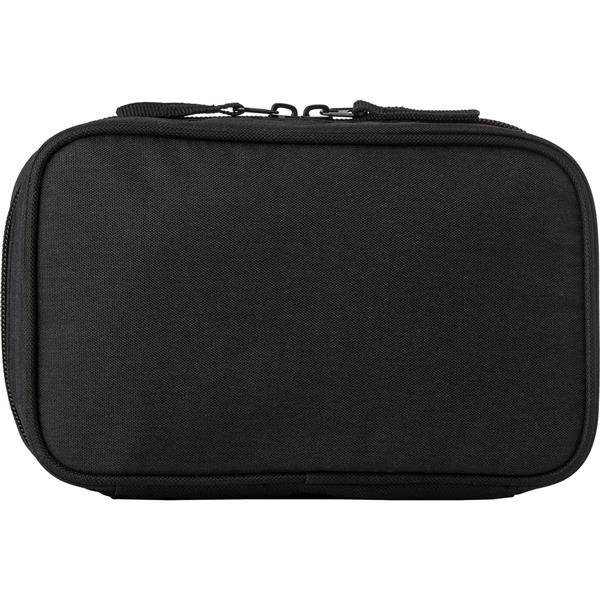 Saszetka podróżna, przegroda zamykana na zamek, kieszenie z przodu na dokumenty zamykane na rzep