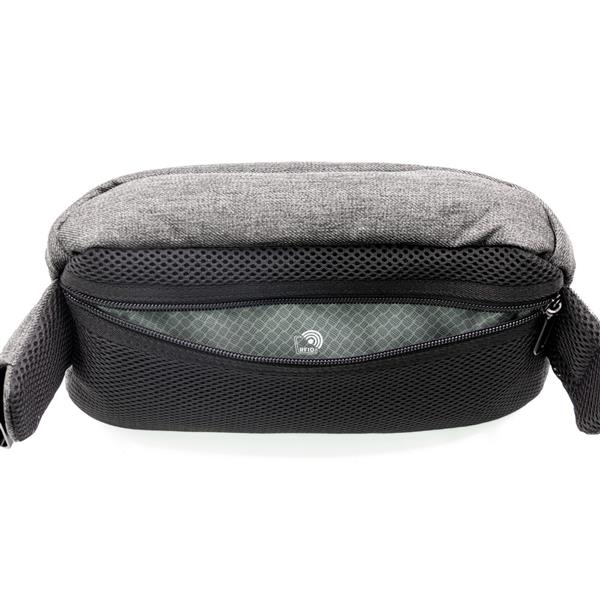 Saszetka zapinana w pasie BrandCharger Crosspack, wykonana z wytrzymałej, odpornej na przecięcia tkaniny, wyściełana konstrukcja, z ochroną RFID, która zwiększa bezpieczeństwo danych, 3 stopniowa klamra zabezpieczająca przed kradzieżą, wykonana z wodoodpornej i odpornej na zabrudzenia tkaniny, zapewnia komfort i ochronę podczas codziennego użytkowania lub podróży, produkt wykonany z RPET i poliestru