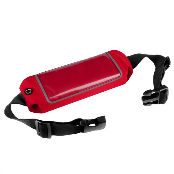 Saszetka zapinana w pasie, posiada kieszeń z okienkiem umożliwiającą obsługę ekranów dotykowych oraz otwór na kabel od słuchawek lub power banku (nie są dołączone), regulowany elastyczny pasek umożliwiający dopasowanie obwodu: min. obwód ok. 59 cm, max. obwód ok. 82 cm (plus rozciągnięcie), produkt wykonany z elastanu