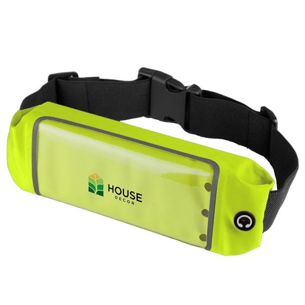 Saszetka zapinana w pasie, posiada kieszeń z okienkiem umożliwiającą obsługę ekranów dotykowych oraz otwór na kabel od słuchawek lub power banku (nie są dołączone), regulowany elastyczny pasek umożliwiający dopasowanie obwodu: min. obwód ok. 59 cm, max. obwód ok. 82 cm (plus rozciągnięcie), produkt wykonany z elastanu