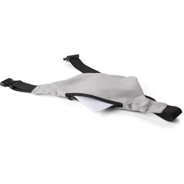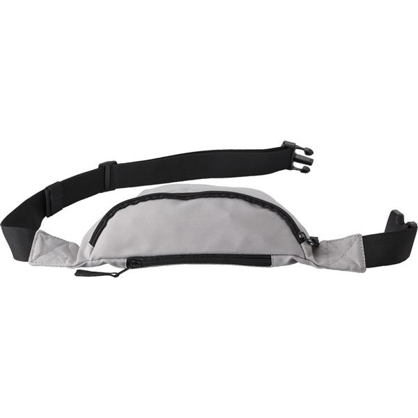 Saszetka zapinana w pasie, przednia kieszeń na zamek błyskawiczny, tylna kieszonka na zamek błyskawiczny, regulowany pasek z zapięciem