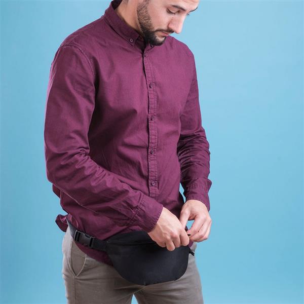Saszetka zapinana w pasie, posiada dwie dopasowane kolorystycznie przegrody na zamek, regulowane zapięcie na klamrę, min. obwód ok. 76 cm, max. obwód ok. 117 cm, produkt wykonany z poliestru 600D
