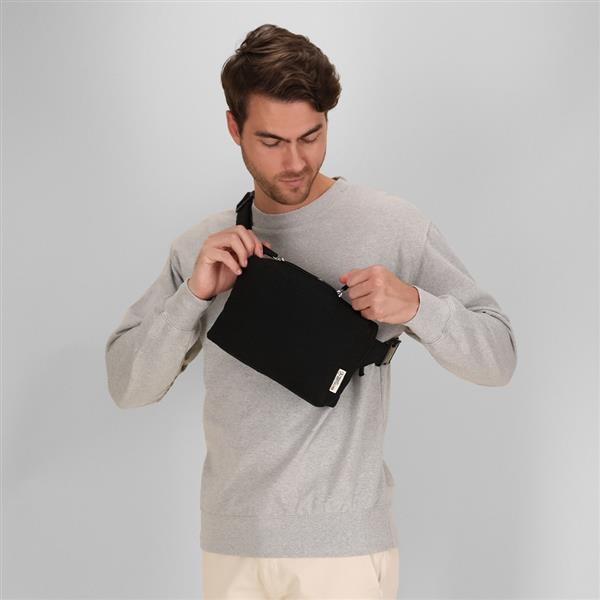 Saszetka zapinana w pasie z główną kieszenią i dodatkową kieszenią z zewnątrz, produkt wykonany z bawełny z recyklingu 300 g/m2