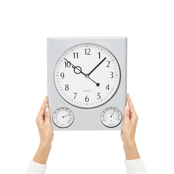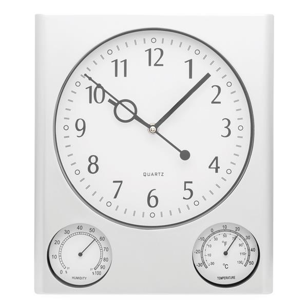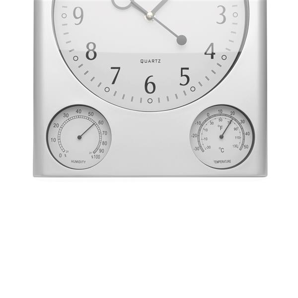 Prostokątny zegar ścienny SATURN z termometrem i higrometrem. Materiał: Plastik/Szkło Kolor: srebrny Tagi: zegary ścienne,zegary