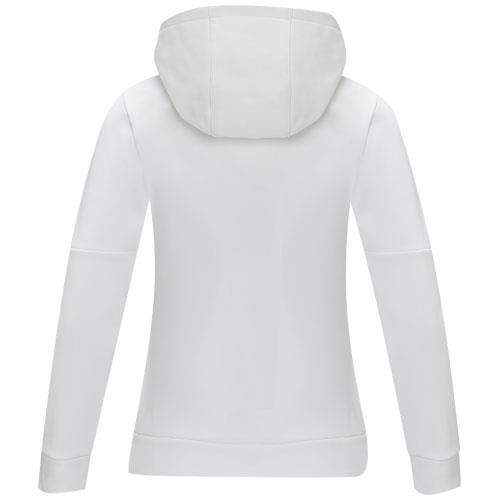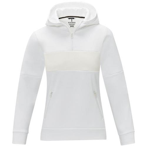 Damski rozpinany sweter z kapturem Sayan to wyjątkowe połączenie wydajności i stylu. Konstrukcja anoraka płynnie łączy modę i funkcjonalność, a ćwierć zamka błyskawicznego zapewnia wszechstronność warstw. Wykonany z mieszanki poliestru i dzianiny Sorona® o gramaturze 350 g/m2. Włókno Sorona® zwiększa ekologiczność kurtki, wprowadzając element zrównoważonego rozwoju bez uszczerbku dla wydajności. Kontrastowa tkanina na przednim panelu, wykonana z nylonu ripstop 280T, dodaje projektowi trwałości i tekstury oraz jest idealnym miejscem do zaprezentowania Twojej marki. Niezależnie od tego, czy wyruszasz na przygodę na świeżym powietrzu, czy po prostu poruszasz się po codziennej rutynie, sweter z kapturem Sayan bez wysiłku łączy modę z funkcjonalnością. Ten sweter ma dopasowany krój, który zapewnia kobiecy wygląd.