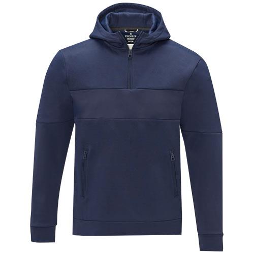 Męska bluza anorak z kapturem zapinana na zamek błyskawiczny Sayan to wyjątkowe połączenie wydajności i stylu. Konstrukcja anoraka płynnie łączy modę i funkcjonalność, z ćwierć zamkiem błyskawicznym dla wszechstronności w warstwach. Wykonany z mieszanki poliestru i dzianiny Sorona® o gramaturze 350 g/m2. Włókno Sorona® zwiększa ekologiczność kurtki, wprowadzając element zrównoważonego rozwoju bez uszczerbku dla wydajności. Kontrastowa tkanina na przednim panelu, wykonana z nylonu ripstop 280T, dodaje projektowi trwałości i tekstury oraz jest idealnym miejscem do zaprezentowania Twojej marki. Niezależnie od tego, czy wyruszasz na przygodę na świeżym powietrzu, czy po prostu poruszasz się po codziennej rutynie, sweter z kapturem Sayan bez wysiłku łączy modę z funkcjonalnością.