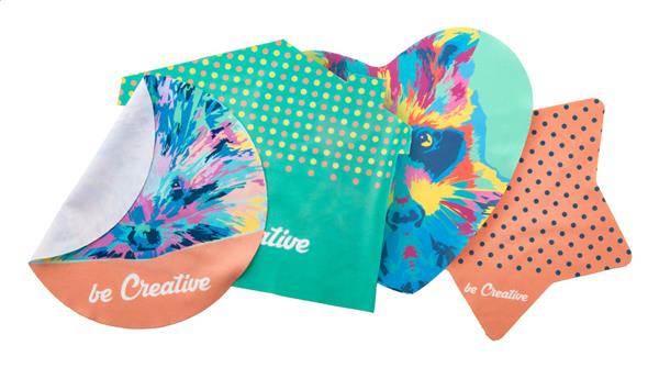 Description: Sćiereczka z mikrofibry (180 g/m2) o unikalnym kształcie do czyszczenia okularów z sublimacyjnym nadrukiem. Min. zam.: 100 szt. Primary Color: biały Gramatura 1: 180 g/m2 Material 1: Mikrofibra Shape: koło Rozmiar: o130 mm