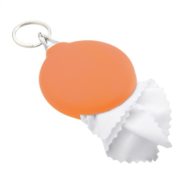 Ściereczka do okularów z mikrofibry w miękkim plastikowym worku z breloczkiem. Rozmiar 130×180 mm.