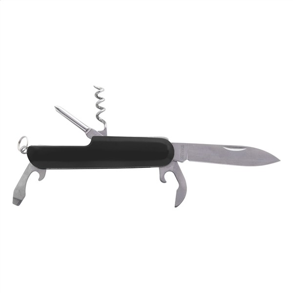 Scyzoryk ze stali nierdzewnej z 5 funkcjami i aluminiową rączką.
