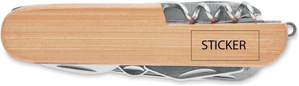 Wielofunkcyjny scyzoryk ze stali nierdzewnej z bambusową powierzchnią. 9 funkcji. Bambus jest produktem naturalnym, mogą występować niewielkie różnice w kolorze i rozmiarze.