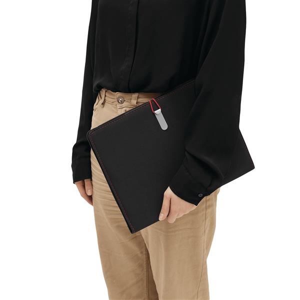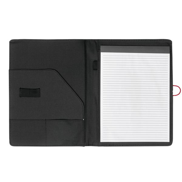 Portfolio SESSION w formacie A4, zawiera notes, pętelkę na przybory do pisania, różne wsuwane kieszenie, metalowy haczyk z kolorową gumką do zamknięcia. Materiał: Poliester/PU Kolor: czarny, czerwony Tagi: Teczki/etui na dokumenty,teczki do pisania,akcesoria biurowe,torby,teczki/etui na laptopy,torby na ramię,teczki,teczki/teczki na notebooki,teczki