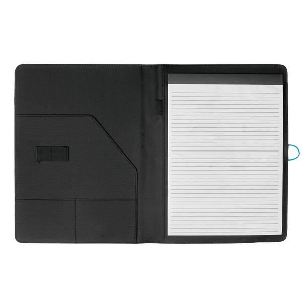 Portfolio SESSION w formacie A4, zawiera notes, pętelkę na przybory do pisania, różne wsuwane kieszenie, metalowy haczyk z kolorową gumką do zamknięcia. Materiał: Poliester/PU Kolor: czarny, turkusowy Tagi: Teczki/etui na dokumenty,teczki do pisania,akcesoria biurowe,torby,teczki/etui na laptopy,torby na ramię,teczki,teczki/teczki na notebooki,teczki