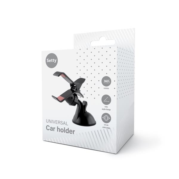 Specjalnie zaprojektowany uchwyt Setty typu żabka umożliwia dostęp do funkcji smartfona podczas jazdy samochodem. Wystraczy przymocować go do szyby i ustawić dowolny kąt, tak aby zapewnić sobie doskonałą widoczność. Uniwersalny klips pasuje do większości smartfonów, rozpiętość ramion uchwytu wynosi ok 9 cm. Uniwersalny uchwyt Setty posiada obrotową głowicę, dzięki czemu możemy ustawić smartfon zarówno w pozycji poziomej i pionowej.