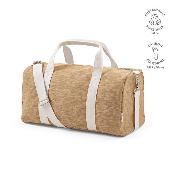 Doświadcz praktycznego luksusu z naszą torbą na siłownię, mieszanką bawełny z recyklingu (75%) i rPET (25%), karabińczykami do paska na ramię i wewnętrzną warstwą rPET. Całość zapakowana w torebkę PE z recyklingu.