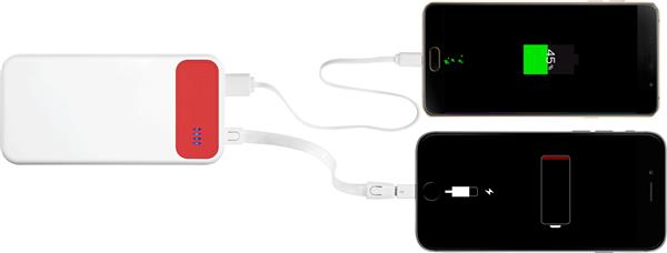 Powerbank SILICON VALLEY to idealne źródło zapasowej energii w podróży przeznaczone dla smartfonów oraz innych urządzeń USB. Kabel USB ze złączem USB TYP C o długości ok. 32 cm, zintegrowany wskaźnik poziomu naładowania, włącznik/wyłącznik, wysokiej wydajności akumulator o pojemność ok. 10 000 mAh, 2 złącza USB, moc wejściowa: 5V/1A, moc wyjściowa: 5V/1A i 5 V/2 A.