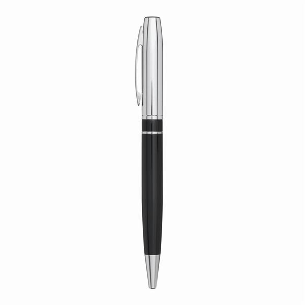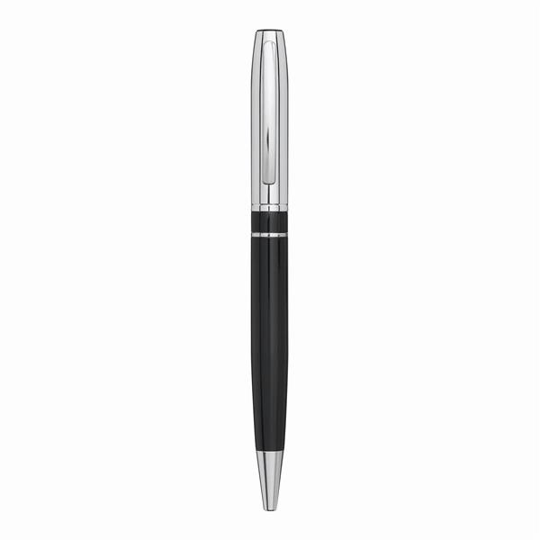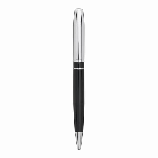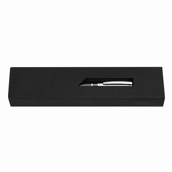 Długopis metalowy SILVER LINE: z mechanizmem obrotowym, błyszcząca powierzchnia, niebieski wkład, w pudełku. Materiał: Stal z recyklingu/Mosiądz Kolor: czarny Tagi: Długopisy,ołówki,akcesoria biurowe,przybory do pisania