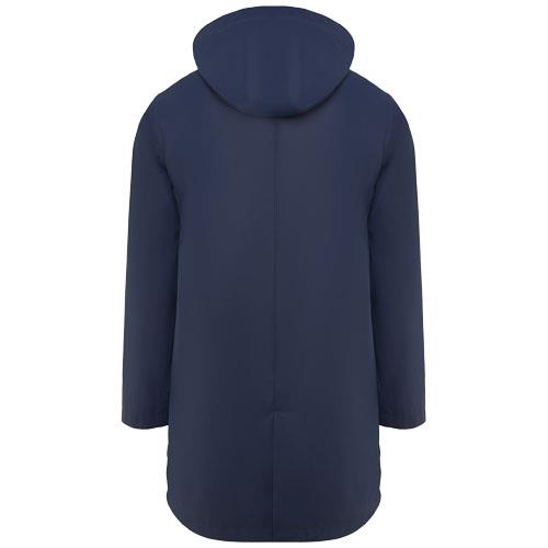 Wodoodporna kurtka przeciwdeszczowa. Kaptur z daszkiem. Zgrzewane zamki błyskawiczne i szwy. Kontrastowe detale w kolorze czarnym. Dwie kieszenie boczne z zamkiem błyskawicznym. Rozcięcie z tyłu. Usuwalna metka. Wodoodporna.