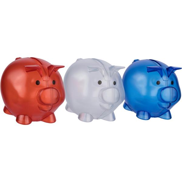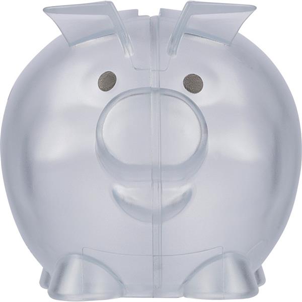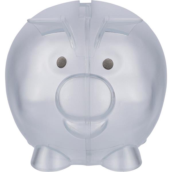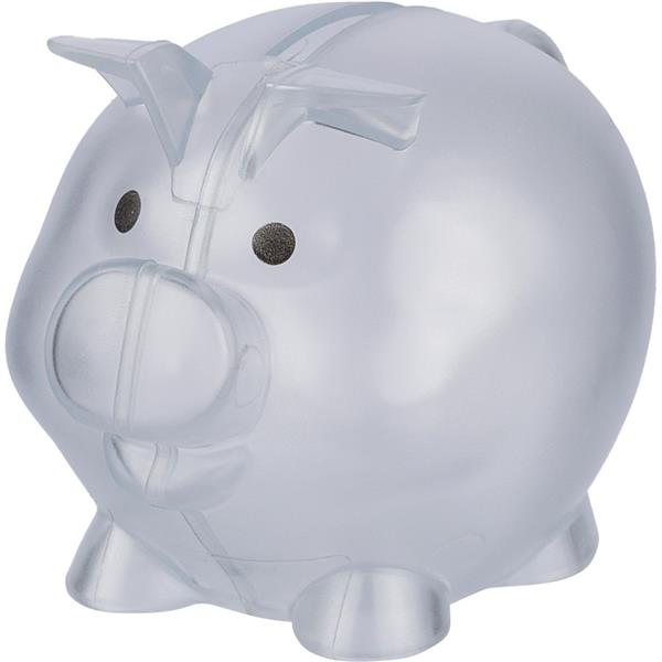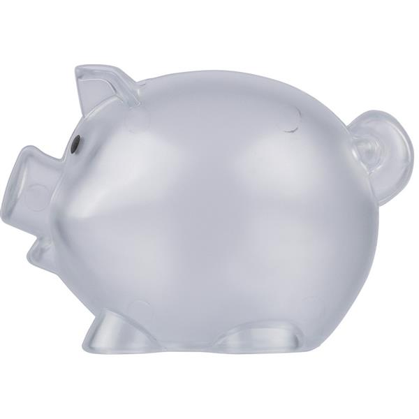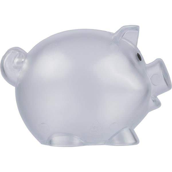 Skarbonka „świnka”, ikona recyklingu na produkcie, zapakowany w woreczek foliowy z recyklingu, produkt wykonany z plastiku z recyklingu