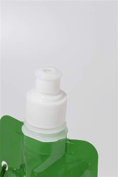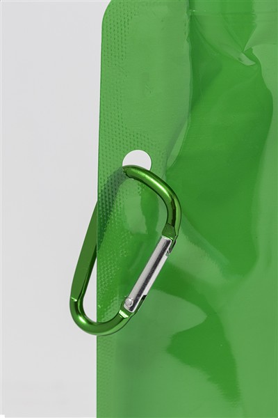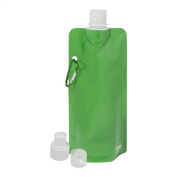 Składana butelka sportowa RPET z pokrywką i aluminiowym karabińczykiem, 500 ml. Bez BPA. Nie nadaje się do napojów gazowanych.
