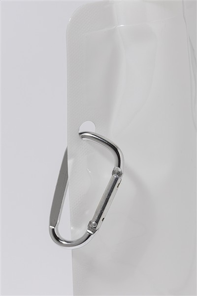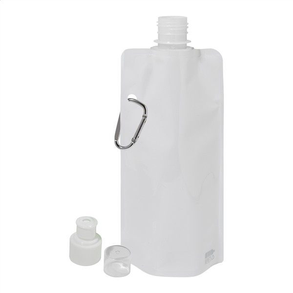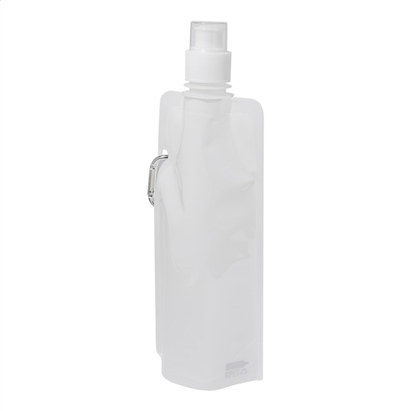 Składana butelka sportowa RPET z pokrywką i aluminiowym karabińczykiem, 500 ml. Bez BPA. Nie nadaje się do napojów gazowanych.