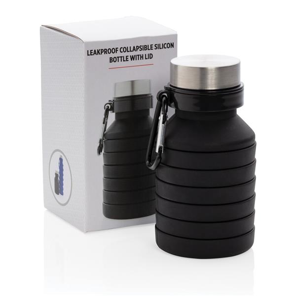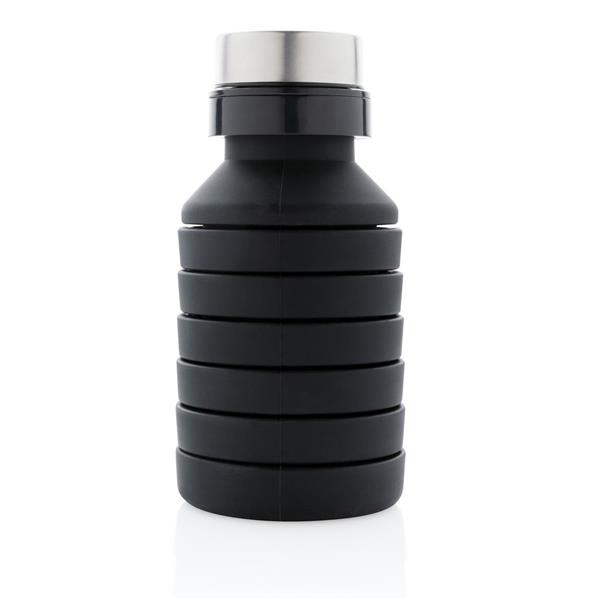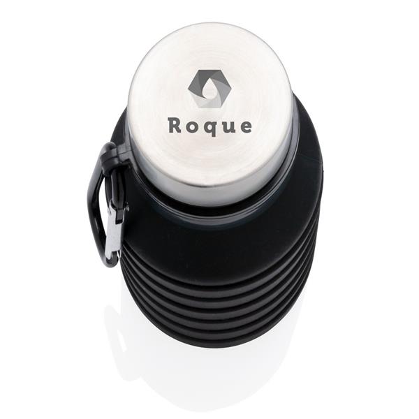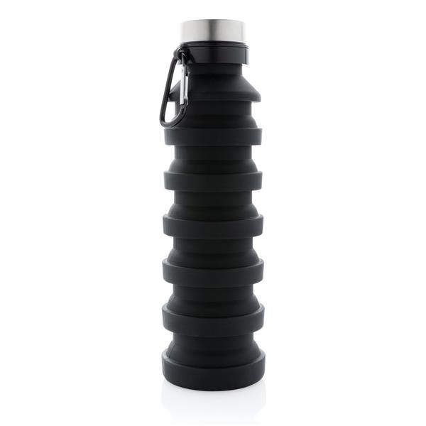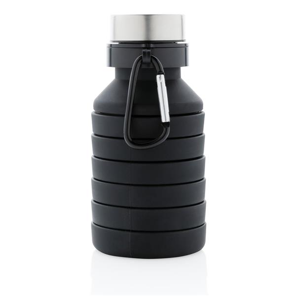Składana butelka sportowa 550 ml z karabińczykiem, szczelna, wykonana w 100% z silikonu przeznaczonego do kontaktu z żywnością, elastyczna i łatwa w czyszczeniu, ślad węglowy produktu: 1,25 kg CO2