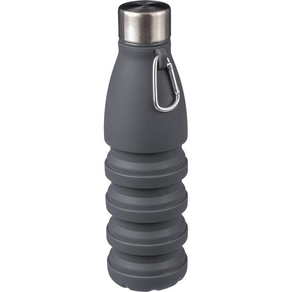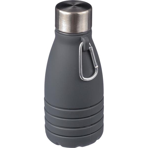Składana butelka sportowa 550 ml z karabińczykiem umożliwiającym przypinanie, produkt wykonany z silikonu, stali nierdzewnej, PP i aluminium