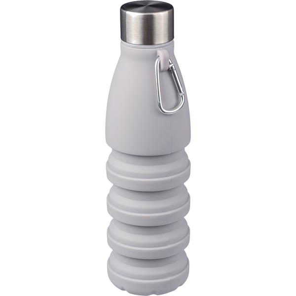 Składana butelka sportowa 550 ml z karabińczykiem umożliwiającym przypinanie, produkt wykonany z silikonu, stali nierdzewnej, PP i aluminium