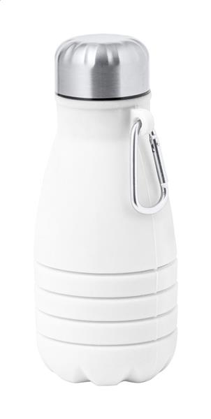 Silikonowa składana butelka sportowa z pokrywką ze stali nierdzewnej i karabińczykiem. 550 ml.