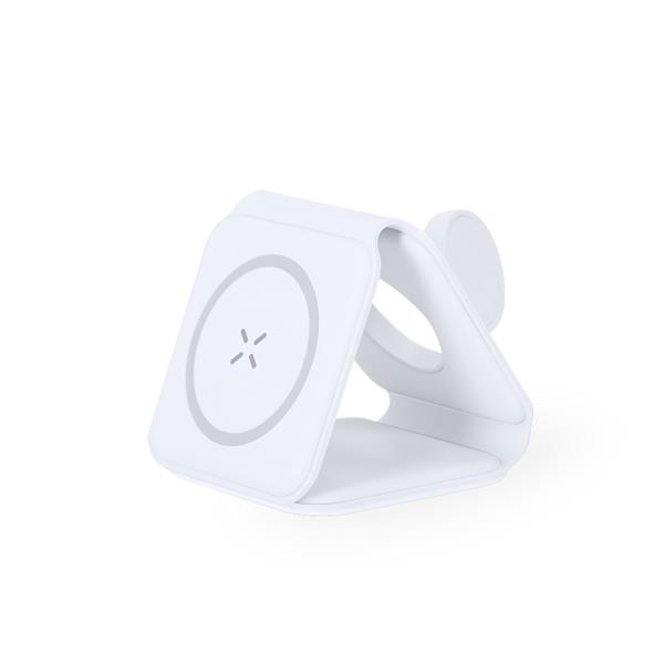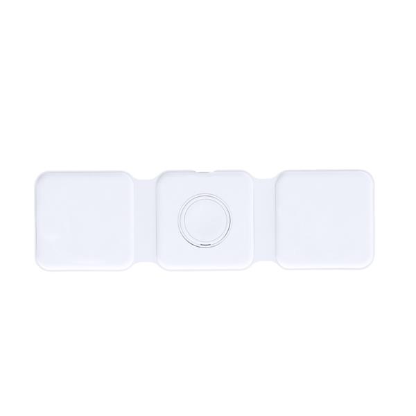 Składana magnetyczna ładowarka bezprzewodowa 15W, 3 w 1, działa z urządzeniami posiadającymi możliwość ładowania indukcyjnego, funkcja magnetyczna działa tylko z kompatybilnymi urządzeniami, 3 cewki ładowania bezprzewodowego (5W-15W, 5W, 2.5W), możliwość ładowania trzech urządzeń jednocześnie, wejście USB-C 9-12V/3-2.2A, kabel USB-C w komplecie, produkt wykonany z ABS