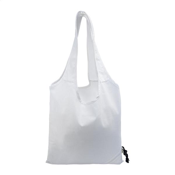 Składana torba na zakupy wykonana w 70% z bawełny pochodzącej z recyklingu i w 30% z poliestru RPET, o gramaturze 140 g/m2. Z charakterystyczną metką z bawełny pochodzącej z recyklingu.