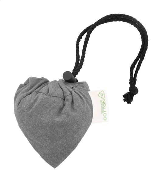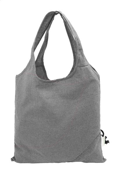Składana torba na zakupy wykonana w 70% z bawełny pochodzącej z recyklingu i w 30% z poliestru RPET, o gramaturze 140 g/m2. Z charakterystyczną metką z bawełny pochodzącej z recyklingu.