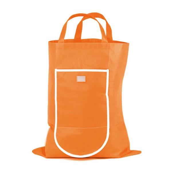 Torebka na zakupy o gramaturze 80g z materiału typu TNT, składana. Łatwa w transporcie, łatwa do przechowywania i jeszcze łatwiejsza do ponownego wykorzystania. Ekologiczny wybór, który możesz dostosować do swoich potrzeb. Zamykanie na rzep i biały obrzeż