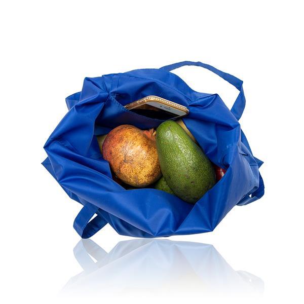 Składana torba z recyklingowanego materiału PET. Rozmiar: 38 x 42 cm S1 (sitodruk): 20 x 20 TT2 (termotransfer): 20 x 15 DTF3 (termotransfer cyfrowy 201-500cm2): 25 x 20 Kolor: Royal blue