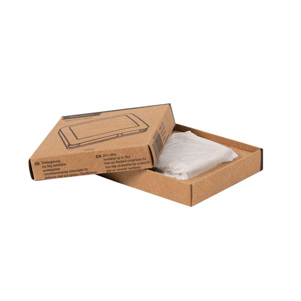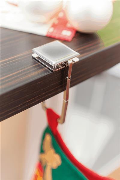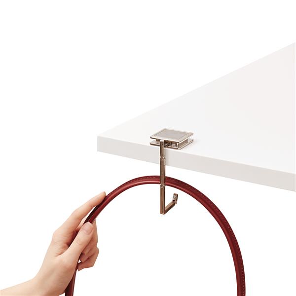 Składana zawieszka na torebkę MONTREUX, idealna na logo powierzchnia wykonana ze stali nierdzewnej, gumowa podstawa zapewnia stabilność, pakowana.