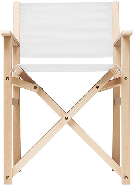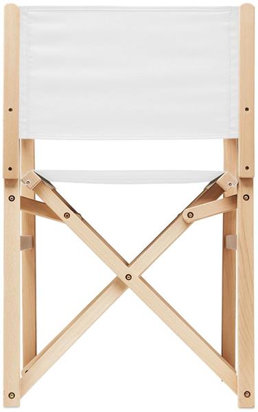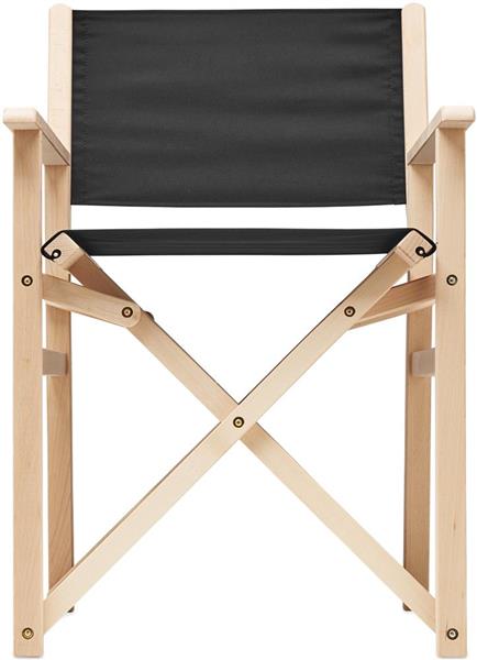 Składane, reżyserskie krzesło drewniane na plażę/kamping ze zdejmowanym siedziskiem z tkaniny poliestrowej. Max: waga 80 kg. Wyprodukowano w UE. Ten przedmiot może być dostarczony tylko w wielokrotności opakowania zewnętrznego zawierającego 2 szt