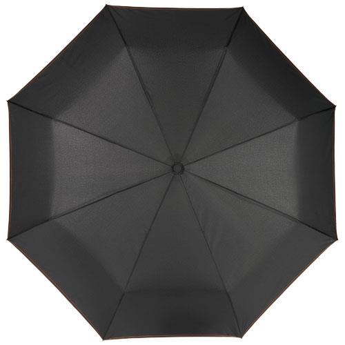 Automatycznie otwierany i zamykany, składany parasol z czaszą wykonaną z poliestru Pongee. Stabilna metalowa rurka i wysokiej jakości rama z żebrowaniem z włókna szklanego, która oferuje maksymalną elastyczność w warunkach wietrznych. Sprzedawany wraz z pokrowcem, można go łatwo schować w torebce lub plecaku. Kolorowe detale na miękkim w dotyku uchwycie, pokryciu i pokrowcu. Duża powierzchnia dekoracyjna na każdym z paneli oraz na uchwycie.