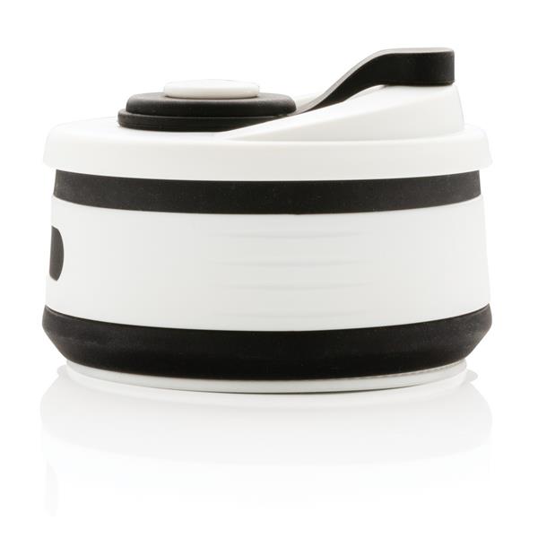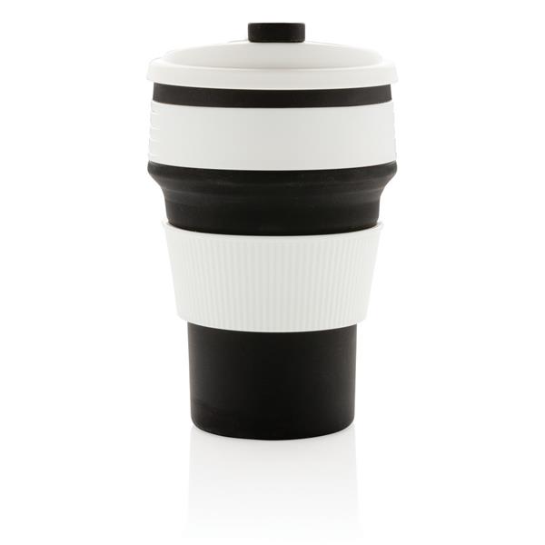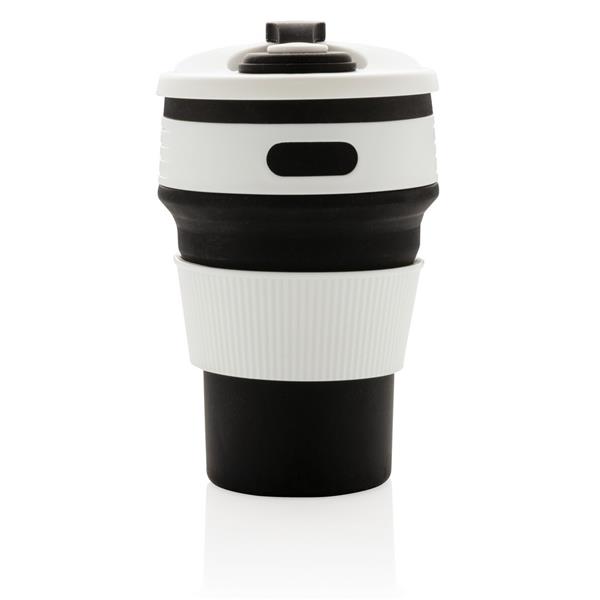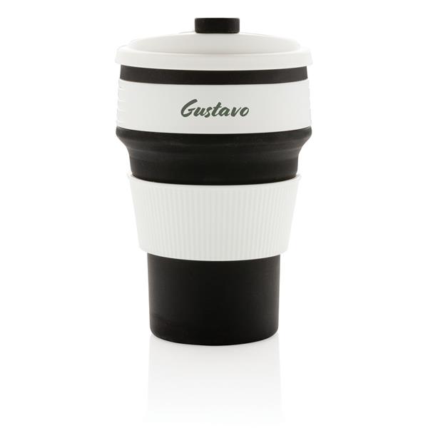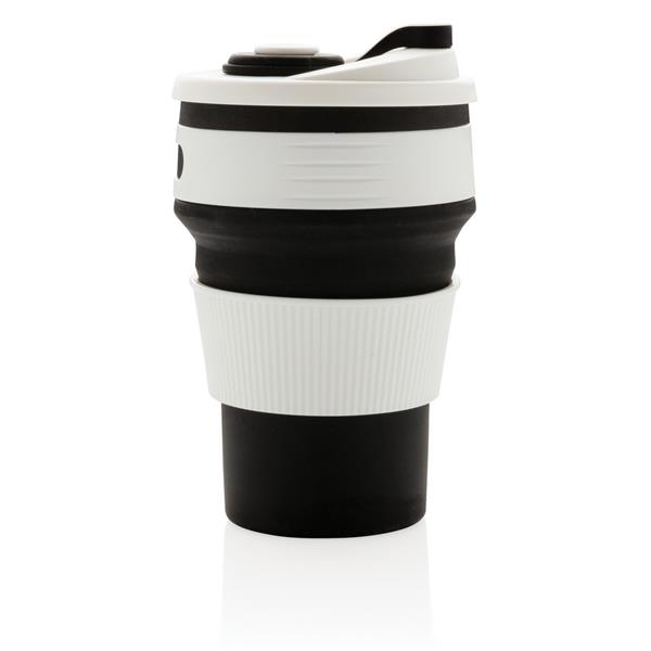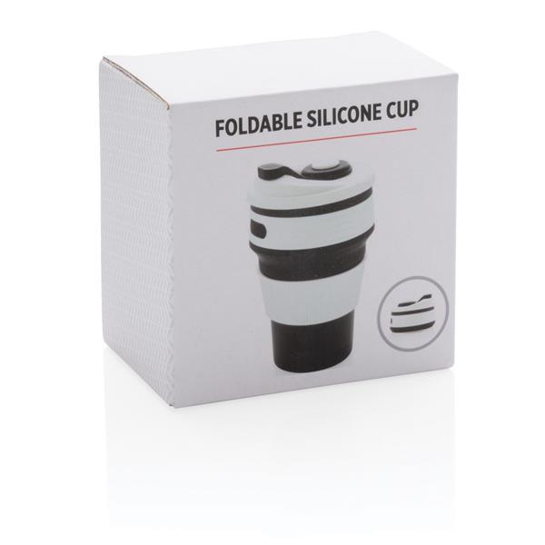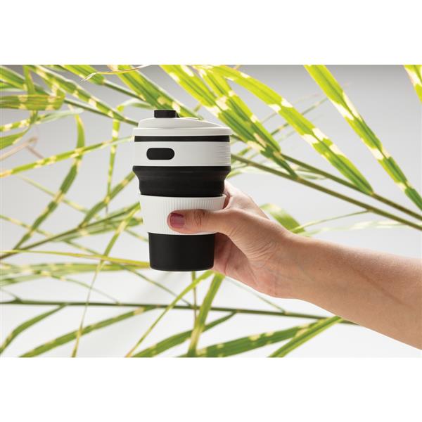 Kubek podróżny 350 ml, składany, wykonany w 100% ze spożywczego materiału silikonowego, nieprzywierająca powłoka, szczelny, elastyczny, przed pierwszym użyciem należy zanurzyć kubek na kilka minut w gotującej wodzie, można myć w zmywarce, ślad węglowy produktu: 0,83 kg CO2
