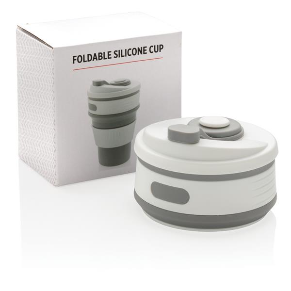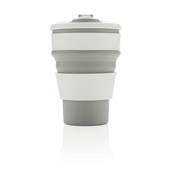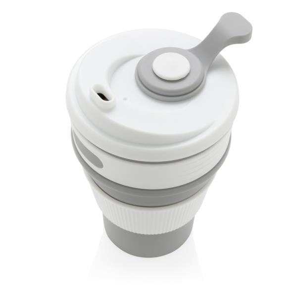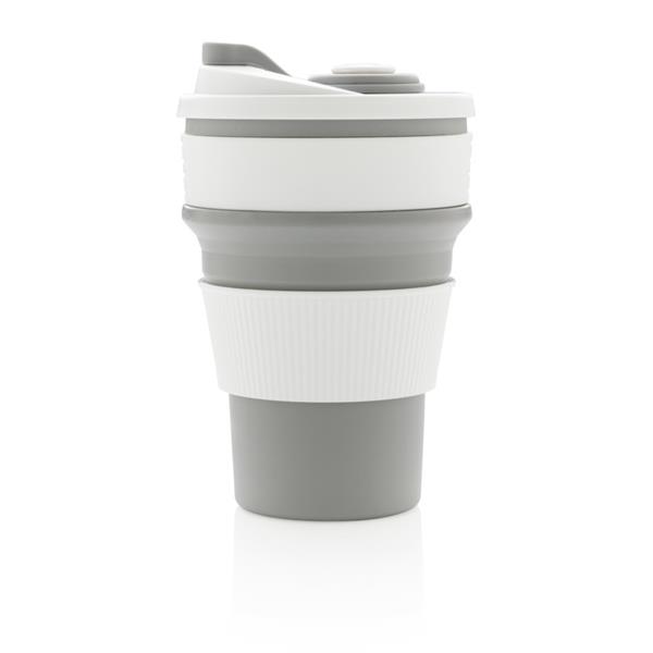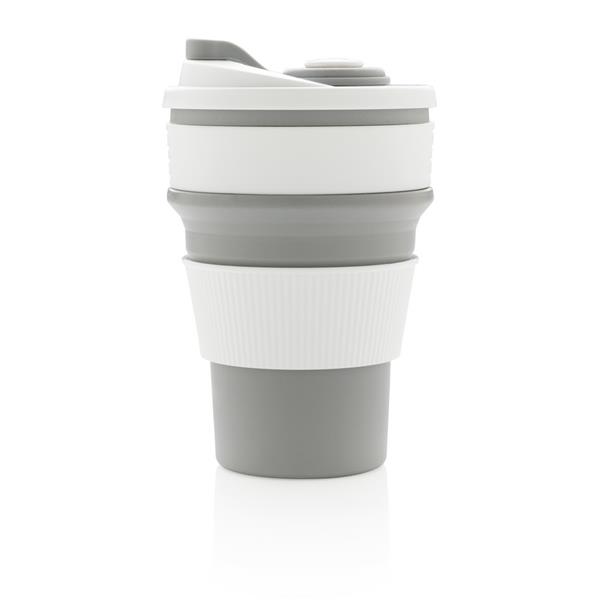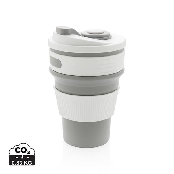Kubek podróżny 350 ml, składany, wykonany w 100% ze spożywczego materiału silikonowego, nieprzywierająca powłoka, szczelny, elastyczny, przed pierwszym użyciem należy zanurzyć kubek na kilka minut w gotującej wodzie, można myć w zmywarce, ślad węglowy produktu: 0,83 kg CO2
