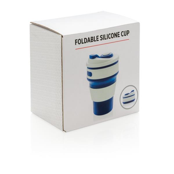 Kubek podróżny 350 ml, składany, wykonany w 100% ze spożywczego materiału silikonowego, nieprzywierająca powłoka, szczelny, elastyczny, przed pierwszym użyciem należy zanurzyć kubek na kilka minut w gotującej wodzie, można myć w zmywarce, ślad węglowy produktu: 0,83 kg CO2