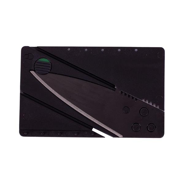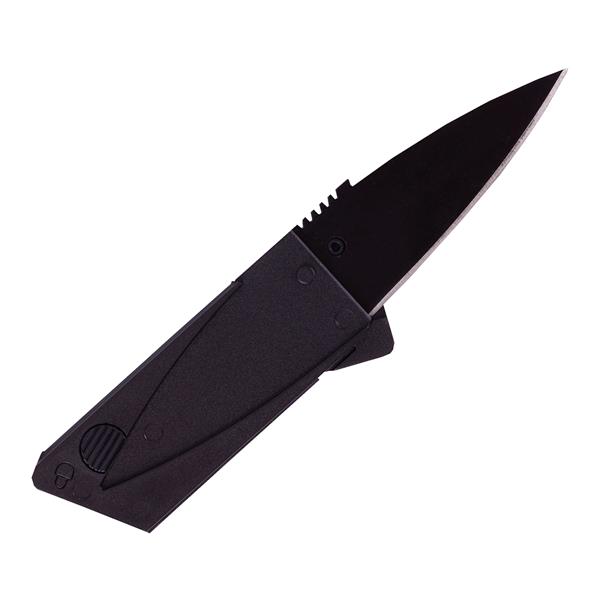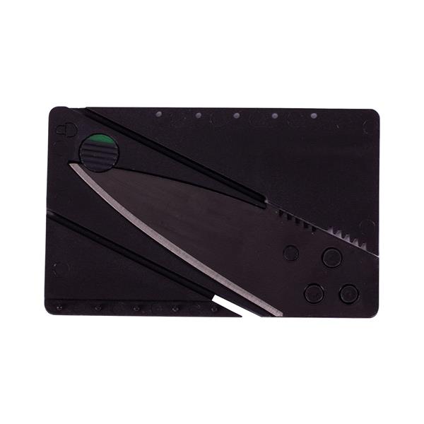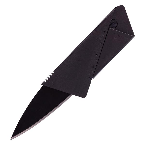Składany na płasko nóż w kształcie karty kredytowej. Zbliżone do karty wymiary pozwalają na umieszczenie noża w portfelu.