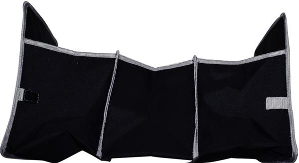 Składany organizer samochodowy z poliestru 600D, wyposażony w boczną kieszeń z siatki.