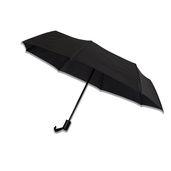 Automatycznie rozkładany/składany parasol. Rama i żebra wykonane z metalu i włókna szklanego. Parasol sztormowy – dzięki zastosowaniu żeber o specjalnej konstrukcji, stelaż może być wywinięty przez wiatr na drugą stronę. Rączka typu soft grip posiada uchwyt. Pakowany w wodoodporne etui.