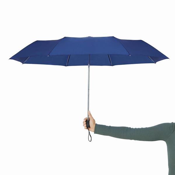 Składany parasol PICOBELLO z 3-częściową metalową laską, szynami z metalu i włókna szklanego, metalowymi kolcami, czarnym uchwytem z tworzywa sztucznego, z poszyciem poliestrowym i zamknięciem na rzep Velcro. Materiał: Metal/Poliester Kolor: niebieski Tagi: Parasole,parasole,akcesoria podróżne,parasole składane