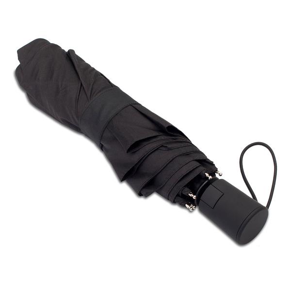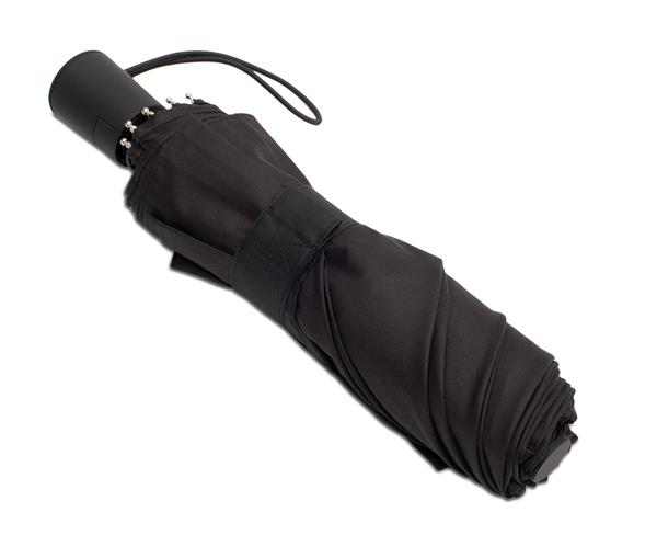 Elegancki, wiatroodporny parasol automatycznie rozkładany z elastycznym zaczepem na rękę. Rączka typu soft grip – miła i delikatna w dotyku. Pakowany w wodoodporne etui z pongee. Rama i żebra wykonane z włókna szklanego i aluminium. Pałąk z metalu. Parasol sztormowy – dzięki zastosowaniu żeber o specjalnej konstrukcji, stelaż może być wywinięty przez wiatr na drugą stronę. Średnica parasola 1000 mm.