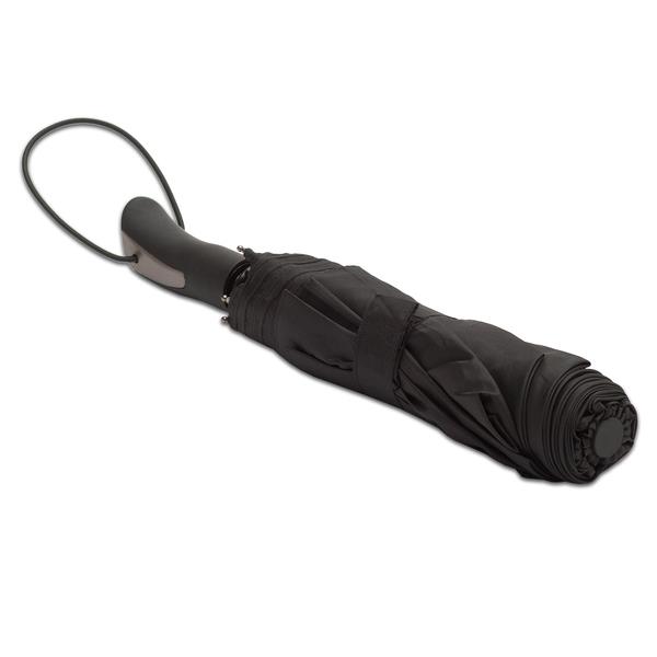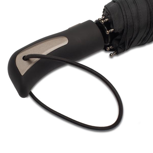 Automatycznie rozkładany/składany, wiatroodporny parasol dla dwojga. Rama i żebra wykonane z aluminium i włókna szklanego, pałąk z metalu. Parasol sztormowy – dzięki zastosowaniu żeber o specjalnej konstrukcji, stelaż może być wywinięty przez wiatr na drugą stronę. Rączka typu soft grip. Pakowany w wodoodporne etui. Średnica parasola 1230 mm. Produkt klasy premium.