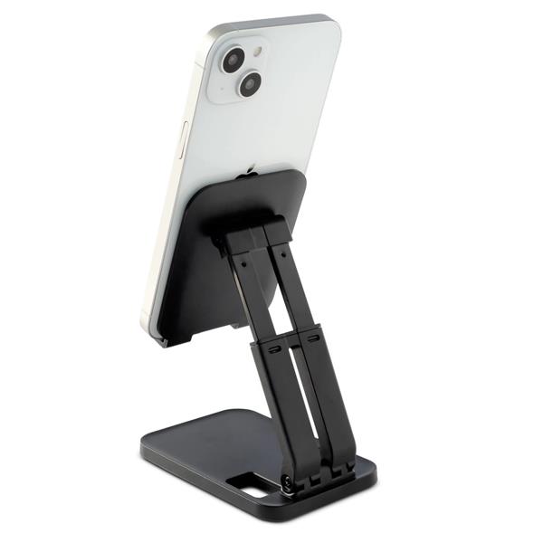 Stojak na telefon z możliwością zmiany kąta nachylenia ramienia wraz z wysokością. Dzięki dwuczęściowemu podparciu sprzętu możesz wygodnie ładować swój telefon. Produkt jest również idealnym towarzyszem podróży! Składa się do kompaktowych rozmiarów, zmieści się więc w każdej torbie i plecaku.